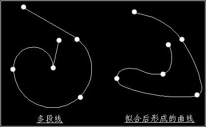 7、擬合(F) :將選定編輯的多段線轉換為由圓弧連接頂點的平滑曲線。