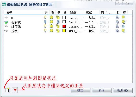 單擊“將圖層添加到圖層狀態”按鈕,將彈出一個對話框,列表中顯示選定的圖層狀態中沒有包含(出現)的圖層,可以將這些圖層添加到選定的圖層狀態中。