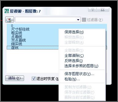 “清除”按鈕,刪除繪圖區(qū)中沒(méi)有使用的圖層,對(duì)話框中只顯示繪圖區(qū)中被使用的圖層。