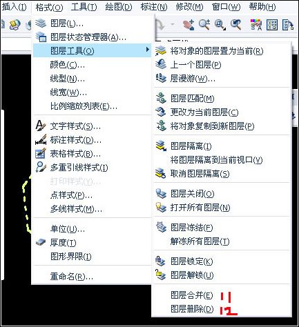 三、其他的圖層操作。菜單欄【格式】——“圖層工具”。“圖層工具”中的操作與 “圖層Ⅱ”工具欄的操作基本上一樣。