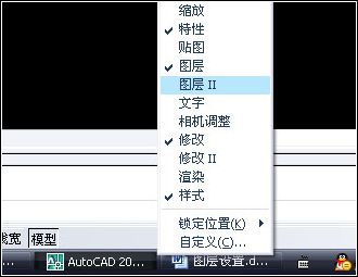 二、“圖層Ⅱ”工具欄。打開(kāi)方法:在任意一個(gè)工具欄上單擊鼠標(biāo)右鍵,在彈出的菜單中選擇“圖層Ⅱ”。