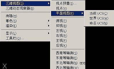 6) 視圖:以垂直于視圖方向 ( 平行于屏幕 ) 的平面為 XY 平面,建立新 UCS