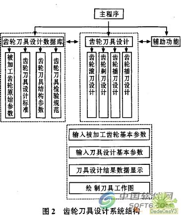 齒輪刀具設計系統結構主要由主程序、刀具設計應用程序和刀具設計數據庫三部分組成(見圖2) 。