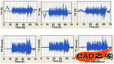 圖8下擺臂前點襯套處六方向載荷時間歷程