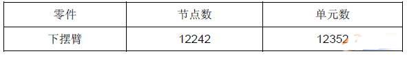 下擺臂模型如圖10所示。模型使用HyperMesh劃分,采用殼單元進行網格劃分,節點數和單元數見表1。