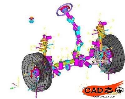 圖2前懸架虛擬試驗臺架多體動力學模型