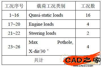 表1 前副車架分析載荷工況列表