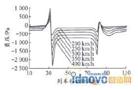 圖3高速會車時的壓力曲線