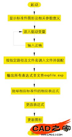 運用開發工具編制若干具有獨立功能的程序模塊,用戶可以進行交互選擇,只需要輸入少量的信息和參數,就能起動相應的程序模塊,使系統自動完成數據訪問、數據運算、構造和編輯實體等操作,從而生成所需規格的標準件圖形。