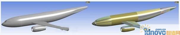 另外,R12.0增強了Workbench環境下創建幾何的功能,提供了更多的自動化功能和更強的適應性,增加了合并、連接和映射等功能用于曲面建模。新增工具可以自動探測處理常見問題,如小邊、碎面、孔洞、裂痕以及尖角面。新版本對幾何模型的修改和處理速度更快。圖3顯示了清除前后的飛機模型。