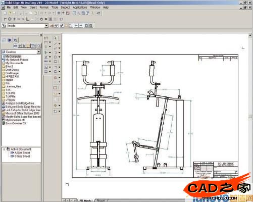 Solid Edge 2D 制圖在設計時便考慮到了這種合作。您可以從使用Solid Edge 3D 設計和制圖產品的公司接收相關信息。然后可以使用Solid Edge 制圖軟件打開他們利用3D 模型生成的圖形。Solid Edge 和SolidEdge 2D 制圖對工程圖(.dft) 文件使用相同的文件格式。您可以像對最初由SolidEdge 2D 制圖創建的文件那樣,打開文件、繪制2D 幾何圖形。對這些文件進行修改后,可將其發送回文件提供方,他們可以打開這些文件并看到您所做的更改。這種方式比接收轉換后的文件要好得多。如果不需要轉換,就不存在由于不同文件格式間的轉換而造成數據丟失的風險。您還可以打開工程圖文件并方便地打印其中的圖形。上圖顯示了在Solid Edge 2D 制圖中打開的一個由Solid Edge Draft 中的3D 模型創建的簡易圖形。