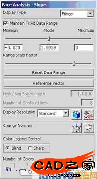 選擇被分析的表面,可以用繞部件拖拽一矩形方便地選擇所有面。如圖2所示選中的面被上色,在圖形窗口顯示一彩色條碼(顏色-斜率) 。