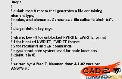 在宏中加入編寫者的名字、編寫的日期、針對的ANSYS版本也是非常有用的。因為可以幫助其他用戶了解該宏,并根據最新的版本進行更新。記住編寫宏的第一定律:今天的宏在明天就會變異成象形文字?,F在看起來充滿邏輯和顯而易見的事,下周就會需要三個小時來破解,半年后的難度可能就僅次于曼哈頓計劃了?,F在花一、兩分鐘在宏的開始添加的信息會讓你和其他使用者以后更輕松。