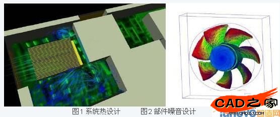 目前,在聯(lián)想產(chǎn)品開發(fā)中,已經(jīng)大量運用計算機仿真的技術(shù)和手段來解決散熱問題,通過仿真分析,合理進行系統(tǒng)布局并優(yōu)化系統(tǒng)的風路設(shè)計(如圖1所示),優(yōu)化風扇扇葉和扇形的設(shè)計(如圖2所示),優(yōu)化散熱器形態(tài)和齒形的設(shè)計,這些綜合手段的運用,使得聯(lián)想計算機產(chǎn)品(臺式電腦、筆記本、服務(wù)器)的熱設(shè)計和噪音設(shè)計達到了世界領(lǐng)先水平。