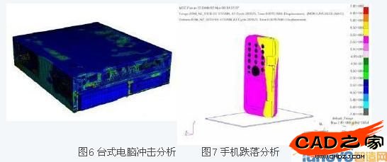 以上諸多問題,使得現(xiàn)代產(chǎn)品開發(fā)中,對于沖擊、跌落、疲勞等可靠性問題的仿真分析顯得尤其重要,聯(lián)想在各類型產(chǎn)品(手機、臺式機、筆記本、服務(wù)器、數(shù)碼產(chǎn)品)開發(fā)中,普遍應(yīng)用仿真技術(shù)(如圖6、7所示),已經(jīng)很好地解決了以上問題,仿真分析的實效性和準確性已經(jīng)得到了長時間的實踐驗證,成為產(chǎn)品開發(fā)中必須環(huán)節(jié)之一。