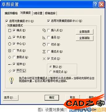 當然,在不同的情況下,對象捕捉設置也往往不相同。