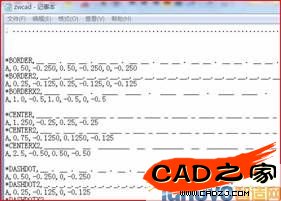 要開發(fā)一套個性化線型,我們首先要了解一下定制規(guī)則。在中望CAD的安裝目錄里面我們可以找到一個名字為zwcad.lin的文件,我們用記事本打開該文件,如下圖所示,里面顯示的就是CAD自帶的各種線型。