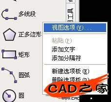 用戶可以調(diào)整工具選項(xiàng)板里面的視圖顯示樣式和大小等。在工具選項(xiàng)板空白處點(diǎn)擊右鍵,選擇“視圖選項(xiàng)”,