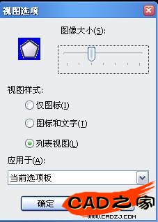調(diào)出“視圖選項(xiàng)”窗口,在這就可以調(diào)整工具選項(xiàng)板圖標(biāo)的大小,還可以調(diào)整圖標(biāo)的顯示樣式,設(shè)置完后可以單獨(dú)應(yīng)用在當(dāng)前選項(xiàng)板,也可以應(yīng)用到整個工具選項(xiàng)板。