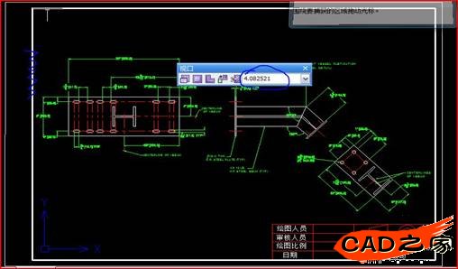 如果我們覺得圖形添加到空間的比例不合適,我們需要進行兩步操作,首先要將光標在圖框內部進行雙擊,這個時候,視口的范圍會亮顯,并且視口工具條也會顯示出現在圖形在是口中的比例,我們可以進行調整。如圖8