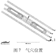 氣穴的存在會(huì)影響注塑件成型及脫模后的質(zhì)量,使注塑件內(nèi)部產(chǎn)生空洞、短射或表面瑕疵。經(jīng)Moldflow分析得到的氣穴位置如圖7所示,基本分布在注塑件側(cè)壁邊緣。在模具設(shè)計(jì)時(shí),要特別注意這些部位的排氣問(wèn)題,可以通過(guò)分型面間隙及推桿與凸模嵌塊的配合間隙實(shí)現(xiàn)排氣。另外,ABS塑料表面極易吸濕,吸水率約在0.2%~0.45%之間,成型之前必須干燥,防止因塑料干燥不良而含有水分、溶劑和揮發(fā)性氣體。