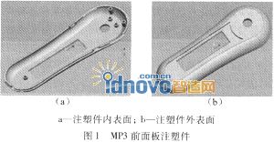 圖1所示為MP3前面板注塑件。筆者以該注塑件為實(shí)例介紹Moldflow軟件在注塑模CAE技術(shù)中的應(yīng)用,說(shuō)明MPI中基本模流分析流程及相關(guān)內(nèi)容。
