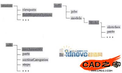 ABAQUS/CAE處理有兩個程序:①內核程序;②GUI程序。內核程序實際上就是它的腳本語言,它采用的是Python語言,同時擴展了Python語言,額外提供了大約500個對象模型,對象模型之間的關系復雜,它們間部分關系如圖1所示。