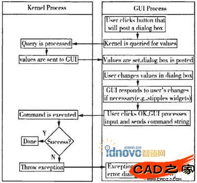 而對于GUI程序來說,它是一個方便用戶輸入或選擇參數的圖形用戶接口,ABAQUS/CAE是采用IPC協議來完成內核程序和GUI程序的通信的。它們之問的通信如圖2所示。