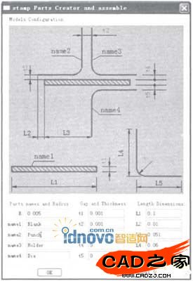 我們都知道二次開發在前處理中主要功能是提高工作效率,對與上述例題如按照一般步驟來要完成先建模、創建材料特性、裝配等過程。而在建模和裝配過程中是比較費時的,尤其是在裝配過程中容易出錯。本節將使用第一種方法即開發出自己應用程序的界面,只要用戶輸入相關參數就可是自動完成建模和裝配任務,以提高工作效率。