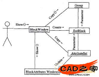 塊屬性的處理包括:①塊屬性的處理:添加必要的屬性信息到塊對象,便于用戶屬性信息的存儲和編輯,此類屬性為顯示信息,方便用戶編輯。②擴展屬性的處理:擴展屬性主要用于存儲用戶自定義屬性,此類信息多為隱式信息,一般用作系內部信息的存儲,對一般用戶不可見。