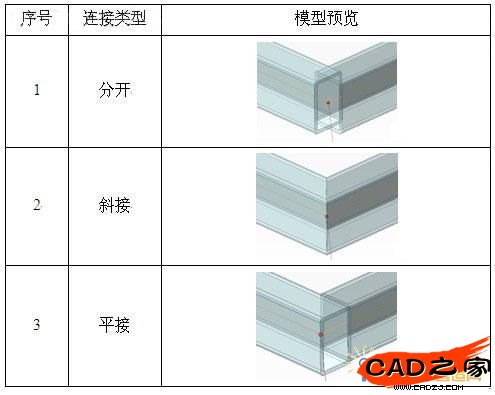 打開“更多選項”/“連接類型”列表。如圖1-7所示,系統給出了構件的3種連接形式,選擇某種類型,相應的預覽會顯示在模型的預覽上。