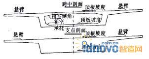 箱梁橋的平面、立面、橫斷面從三個(gè)不同的視角反映橋梁的立體結(jié)構(gòu),在完成平面和立面設(shè)計(jì)及繪制后,系統(tǒng)就能給出不同部位的剖面圖設(shè)計(jì),但是一個(gè)位置的剖面圖是無(wú)法平縱面構(gòu)造出箱梁橋的立體模型的,故系統(tǒng)給出變化點(diǎn)的剖面(如跨中剖面和指點(diǎn)剖面,如圖6所示)供用戶(hù)進(jìn)行設(shè)計(jì),如此就能通過(guò)與平縱面的結(jié)合構(gòu)造出箱梁橋的立體模型,并存儲(chǔ)于數(shù)據(jù)庫(kù)中,供后續(xù)設(shè)計(jì)使用。