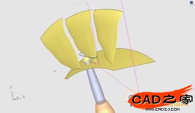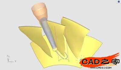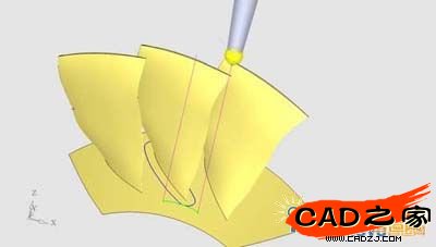 通過導航器可以觀察到明顯的過切。此零件不能通過單一的側傾角度同時避免刀軸對加工葉片及相鄰葉片的干涉。是葉輪加工中比較常見的難點。