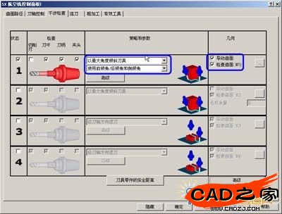 此刀路確實避免了刀具對驅動曲面和檢查曲面的干涉,但刀軸向下,顯然不是我們想要的刀路。