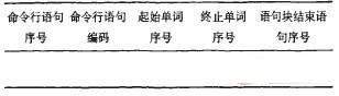從表2可以知道,命令行語句信息結構包含5部分內容:命令行語句序號,記錄命令行語句在命令行語句序列文件中的位置;命令行語句編碼,表標注命令行語句的編碼信息;起始單詞序號,標注命令行語句的首單詞符號在細粒度單詞符號序列中的位置;終止單詞序號,標注命令行語句的尾單詞符號在細粒度單詞符號序列中的位置;語句塊結束語句序號,針對命令行后面有語句塊的語句,標注該命令行語句的語句塊結束位置。其中對命令行語句的內容采用記錄命令行語句首尾單詞符號在細粒度單詞符號序列中的位置的方式,既方便回溯到命令行在源代碼流文件中的位置,又能減少文本的儲存量。并且記錄了命令行語句的語句塊結束位置,方便定位信息搜索范圍。