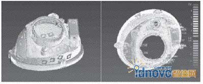 在具體工程設計中,采用Tmageware與UG軟件相結合的方法,使用Imageware進行點、線處理得到曲線形狀,然后使用UG引入控制線的數據進行產品的曲面造型。現以車燈的逆向工程應用說明逆向工程應用流程。本例采用國內首創的照相式光柵三維掃描儀——天遠三維描儀(OKIO一400型)為逆向測量設備。