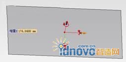 單擊“Q”鍵,此時工作平面如圖10所示,這時可以通過拖動工作平面上的紅色坐標系的箭頭來調整移動的方向與位移量,通過拖動弧線可以調整工作平面的角度。