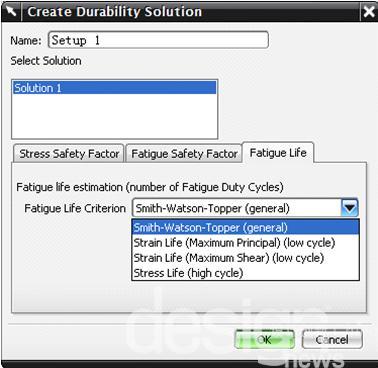在產生/編輯Durability Solution 的時候有一個對話框,讓用戶選擇"Fatigue Life"的4種標準,怎樣選擇這個4種標準?