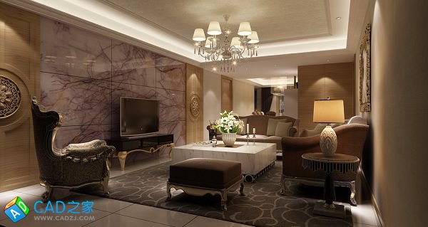 濟南九英里F戶型現代古典風格施工圖及效果圖