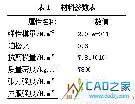 由于該件受力較大,設計時選用了ZG35Mn材料,分析過程中首先將該材料的彈性模量、泊松比、抗剪模量、張力強度、屈服強度、以及密度按照要求輸入系統。參數值如表1所示。