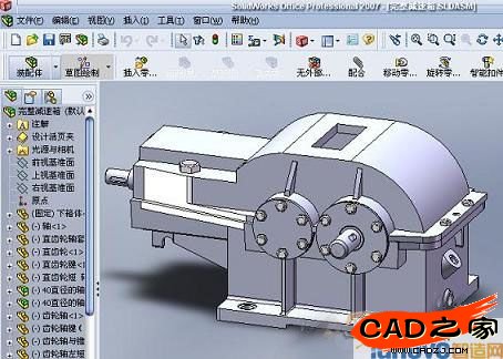 虛擬設計(Virtual Design)是將VR技術和CAD技術相結合的一個應用于多領域的新技術。近年來,商業CAD軟件及工具的興起,例如:PTC公司的產品SolidWorks,Pro/Engineer,SDRC的產品I-DEAS Master Series、UGS公司的產品Unigraphics等,推動了虛擬設計的發展。本文基于SolidWorks三維軟件完成的雙級減速箱的虛擬設計。