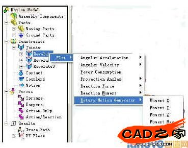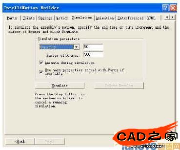 此外,還可將運動仿真的效果直接輸出為影視文件。在Motion的下拉菜單中選取“Export Results”按鈕后,點擊“To AVI Movie”按鈕,即可將運動仿真的影視文件存儲在指定的目錄。
