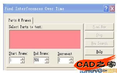 在Motion的下拉菜單中選取“Intellimotion builder”按鈕后,點擊“Interferences”按鈕(如圖4所示),然后再點擊“Check Interferences”按鈕,即可進行運動干涉檢查,若有運動干涉的部件就會在如圖7所示的窗口中顯示,然后即可在相應的部位進行修改。若出現干涉,可察看到具體干涉位置,相應部位進行修改設計。