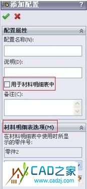 3.對于配置選項中的明細表選項,建議不要勾選“用于材料明細表”,材料明細表選項也不用去管,在材料明細表中顯示什么樣的內容最好用自定義屬性確定。圖20