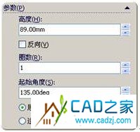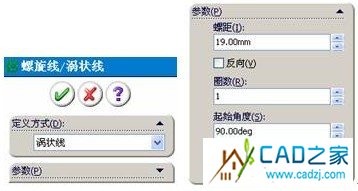 (6)在“起始角度”微調(diào)框中指定第一圈的螺旋線的起始角度。