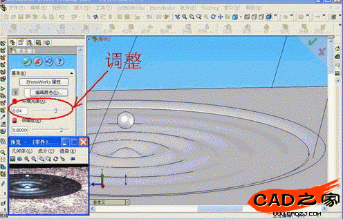 我們回到建模的特征書,打開光源,發現被Studio添加了幾個光源,右鍵編輯光源,調節一下光源的亮度等選項,在材質里面對水的材質再進行調整,比如增加透明度等等,這個過程中可以通過預覽窗口來看改編的效果。