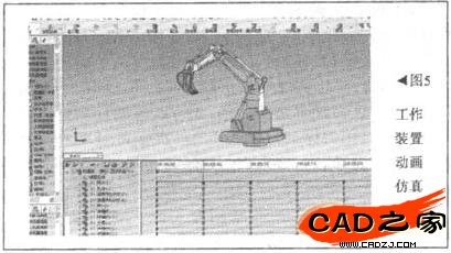 SolidWorks擁有對裝配體進行千涉檢查、碰撞檢查和動態(tài)間隙檢測功能,以幫助我們在裝配過程中判斷零件之間有無干涉,保證任意兩個零件在空間不會出現(xiàn)相互重疊現(xiàn)象。在檢查過程中可以通過移動或旋轉(zhuǎn)零部件來動態(tài)檢查零部件之間的間隙,避免真正實物安裝時產(chǎn)生干涉而無法安裝,以便從中發(fā)現(xiàn)問題及時對模型進行修改,直到獲得滿意結(jié)果。進行產(chǎn)品設(shè)計時,若所有零部件的三維零件模型都已創(chuàng)建成功并裝配完畢,還可以進行動畫制作,以便進一步查看該裝配體在動態(tài)過程中各零部件之間的相互關(guān)系和檢測虛擬裝配的可靠性。利用動畫仿真可以評估所設(shè)計的零部件對預期功能的實現(xiàn)程度,進而優(yōu)化設(shè)計,有效地確保產(chǎn)品的可裝配性。圖5為挖掘機工作裝置的動畫仿真過程。