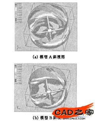 綜合上述仿真結果及分析,本課題采用模型B為最終方案,即平行射流攪拌器的射流孔向下傾斜15°。由于向下傾斜15°僅是為了分析A,B兩種模型優劣,具體加工時還要最終確定傾斜角度,因此對射流孔傾斜角度進行多次仿真模擬,以10°,15°,20°噴射液流的仿真結果如圖5所示。