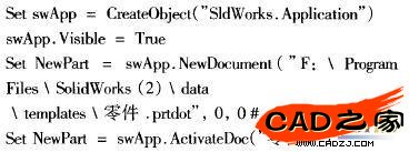 (2)調(diào)用VB與SolidWorks的開發(fā)接口,建立VB與SolidWorks的聯(lián)系。