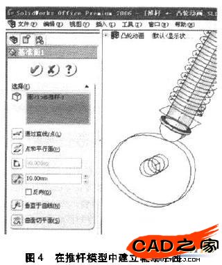 在上視基準面上繪制圓形草圖3,以草圖3建立螺旋彗夕渦狀線1,圈數為彈簧并緊圈數,螺距為壓并高度除以并緊圈數,旋轉方向選擇逆時針。